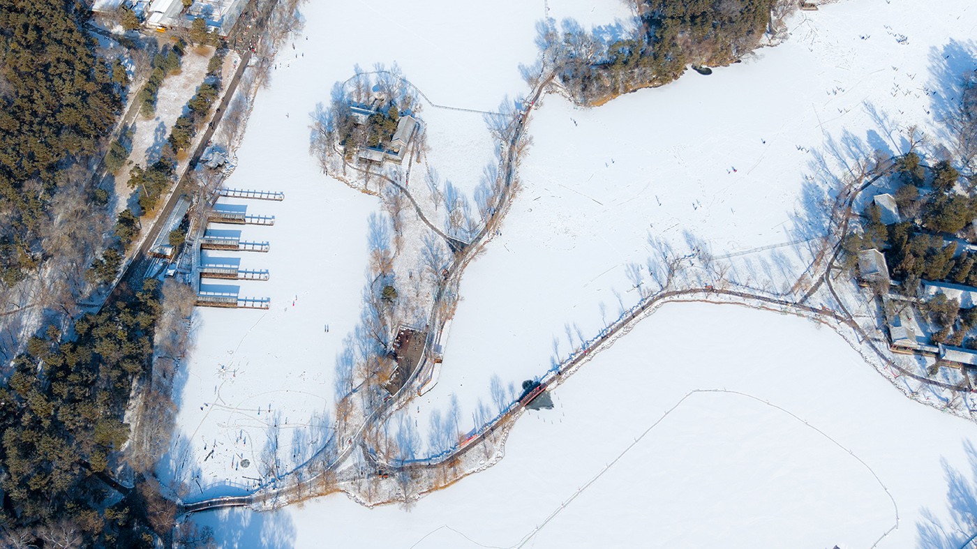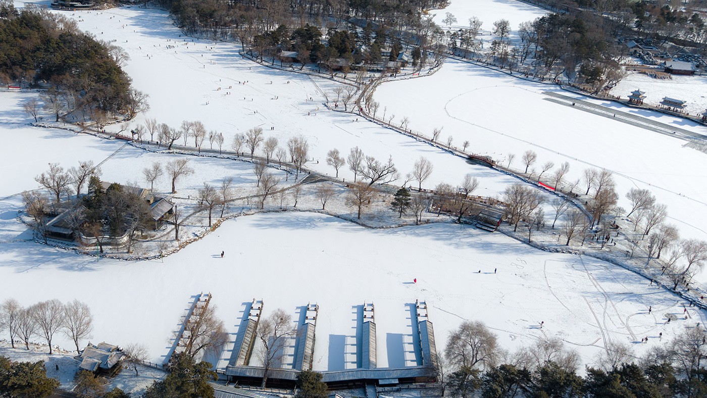 避暑山庄初雪--芝径云堤